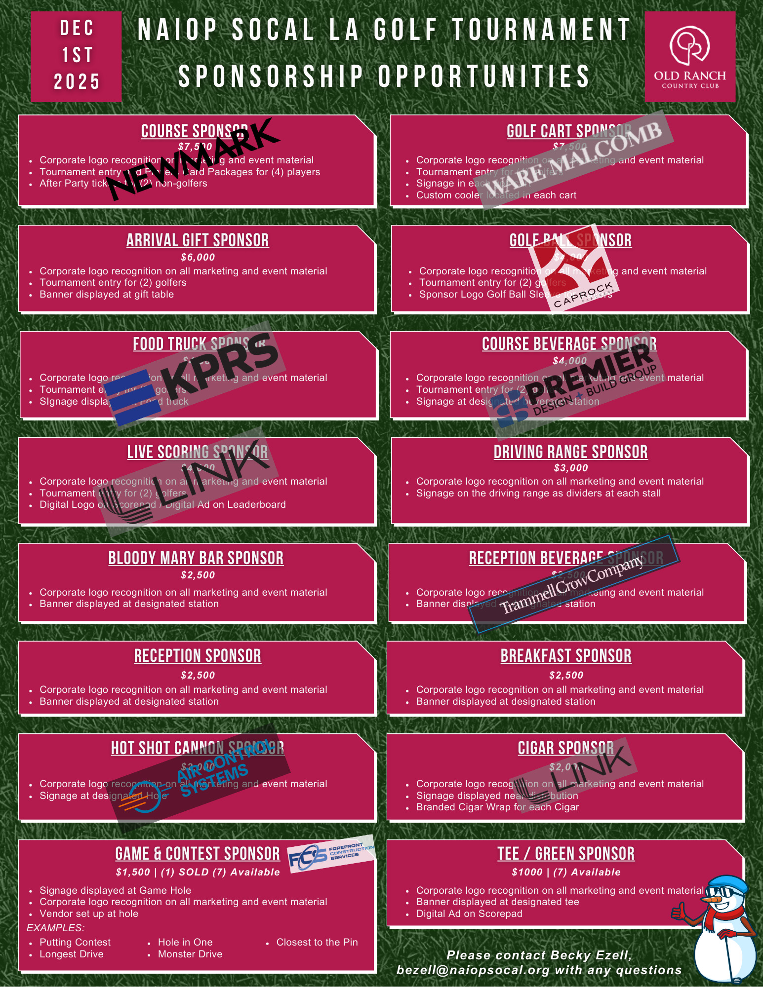 Tournament is SOLD OUT! But don’t put your clubs away just yet — there’s still time to get your brand in the spotlight! This is your chance to stay in the game, gain premium visibility, and connect with Southern California’s top CRE leaders.