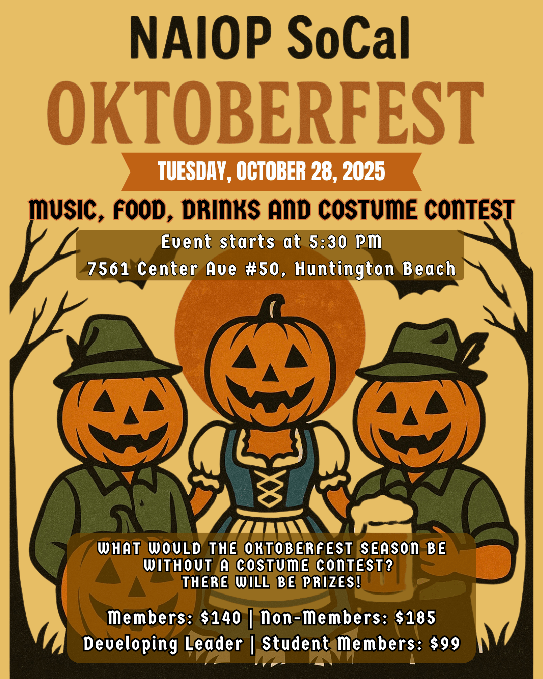 Celebrate the end of summer with NAIOP SoCal! Get your networking and raise a glass and Prost with us at NAIOP SoCal's OC OktoberFest! Join us on Tuesday, October 28th. Grab a drink as you enjoy gourmet German food, and network with your fellow Commercial Real Estate professionals. You won't want to miss this...